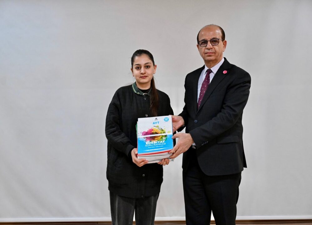 Yeşilyurt’un geleceğini sadece fiziki yatırımlarla değil, insan odaklı ve özellikle gençlere yönelik projelerle inşa ettiklerini, eğitim hizmetlerine ise her zaman ayrıcalık gösterdiklerini dile getiren Başkan Geçit, öğrencilere hitaben yaptığı konuşmada; “Sizlerin hedeflerinize ve hayallerinize ulaşma yolunda yanınızda olmak bizim en temel görevlerimizden bir tanesidir. Düzenli, planlı ve sistemli bir çalışma prensibini hayatının merkezine alan her bir öğrencimiz daha kolay hedeflerine ulaşabilir. Okulun veya eğitim mekanının merkezde ya da kırsalda olması bir öğrenci için asla avantaj ya da dezavantaj değildir, yeter ki zamanı en iyi şekilde yönetin. Zamanı iyi yöneten, dünyayı yönetir. Yatma, kalkma, ders çalışma ve normal zamanı en iyi şekilde planlarsanız büyük başarılara ulaşabilirsiniz. Başarının sırrı ise emekte saklıdır, kestirme yollar sizi başarıya götürmez. Sıkıntı çekmeden, yorulmadan asla başarıya ulaşılmaz. Belediye Başkanlığımın yanı sıra üroloji profesörüyüm, hayatım boyunca zamanımı iyi planlamaya, disiplinli çalışmaya büyük önem verdim. Unutmayın ki başarı; azim, emek ve süreklilikle gelir. Sizler yeter ki hedeflerinize inanın ve kararlılıkla çalışın. Bizler size sonuna kadar güveniyoruz, büyük emekler verip hedeflerinize ulaşacağına inanıyoruz, bizlerde her türlü destek ve katkıyla yanınızda olacağız. Bugün sizlere dağıttığımız TYT-AYT kitapları da bu sürecin önemli bir parçasıdır. Bu kaynakların, planlı ve disiplinli bir çalışma ile sizlere ciddi katkılar sunacağına inanıyorum.” şeklinde konuştu.